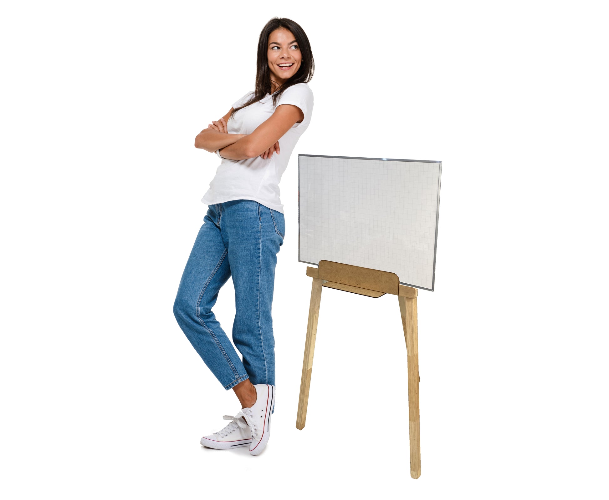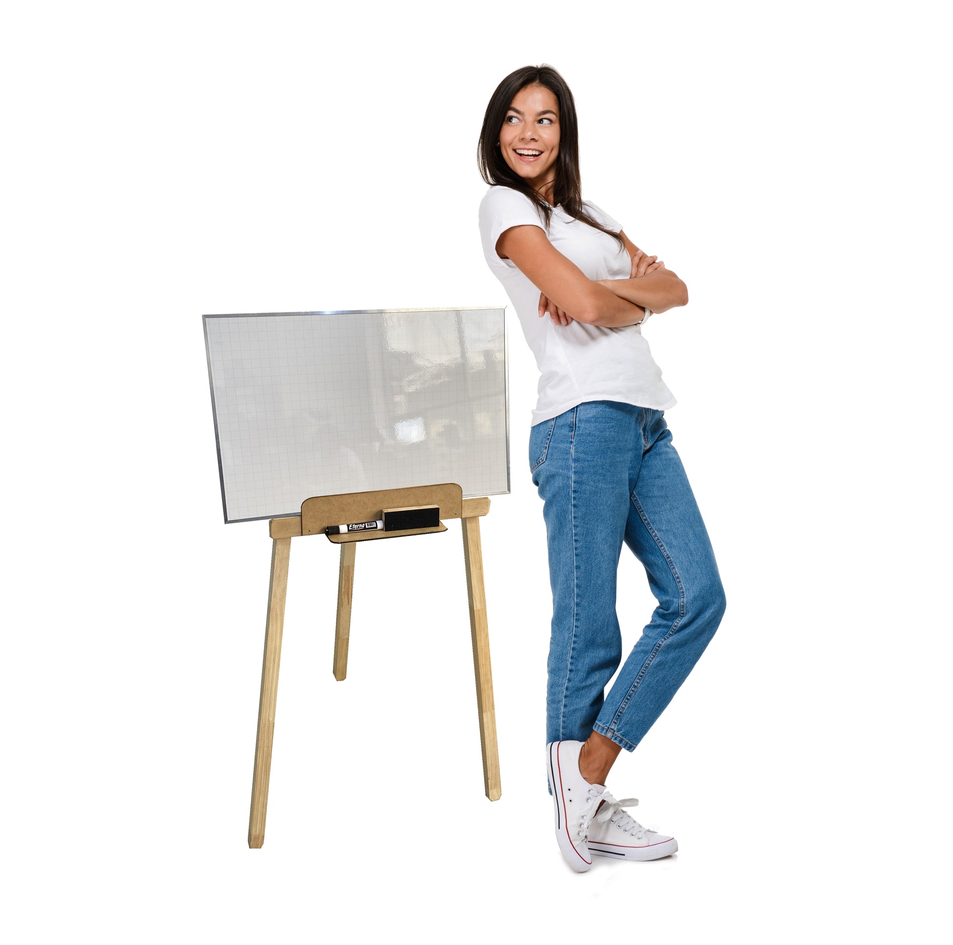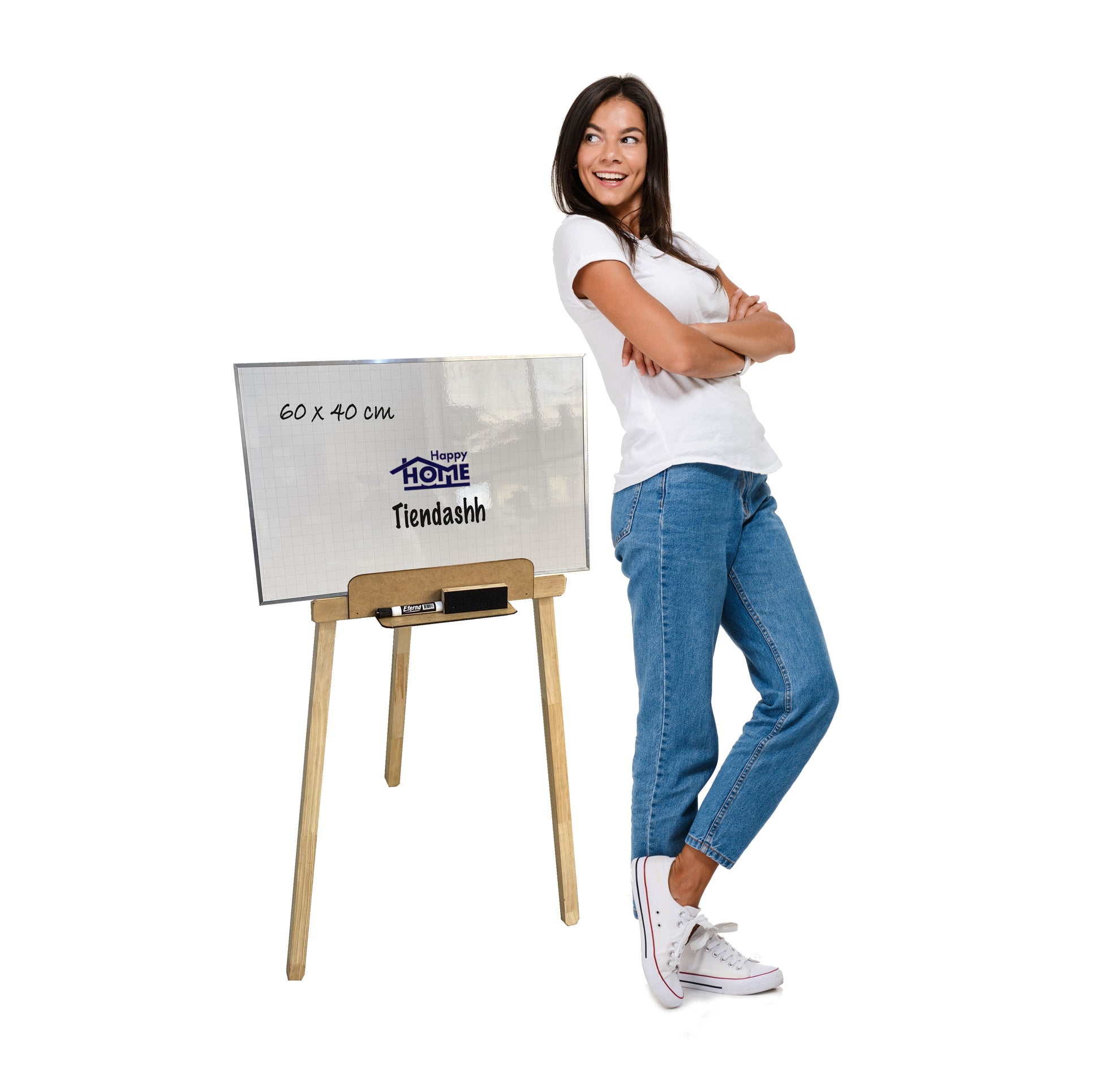 Caballete o trípode, con tablero acrílico borrable de 60 x 40cm