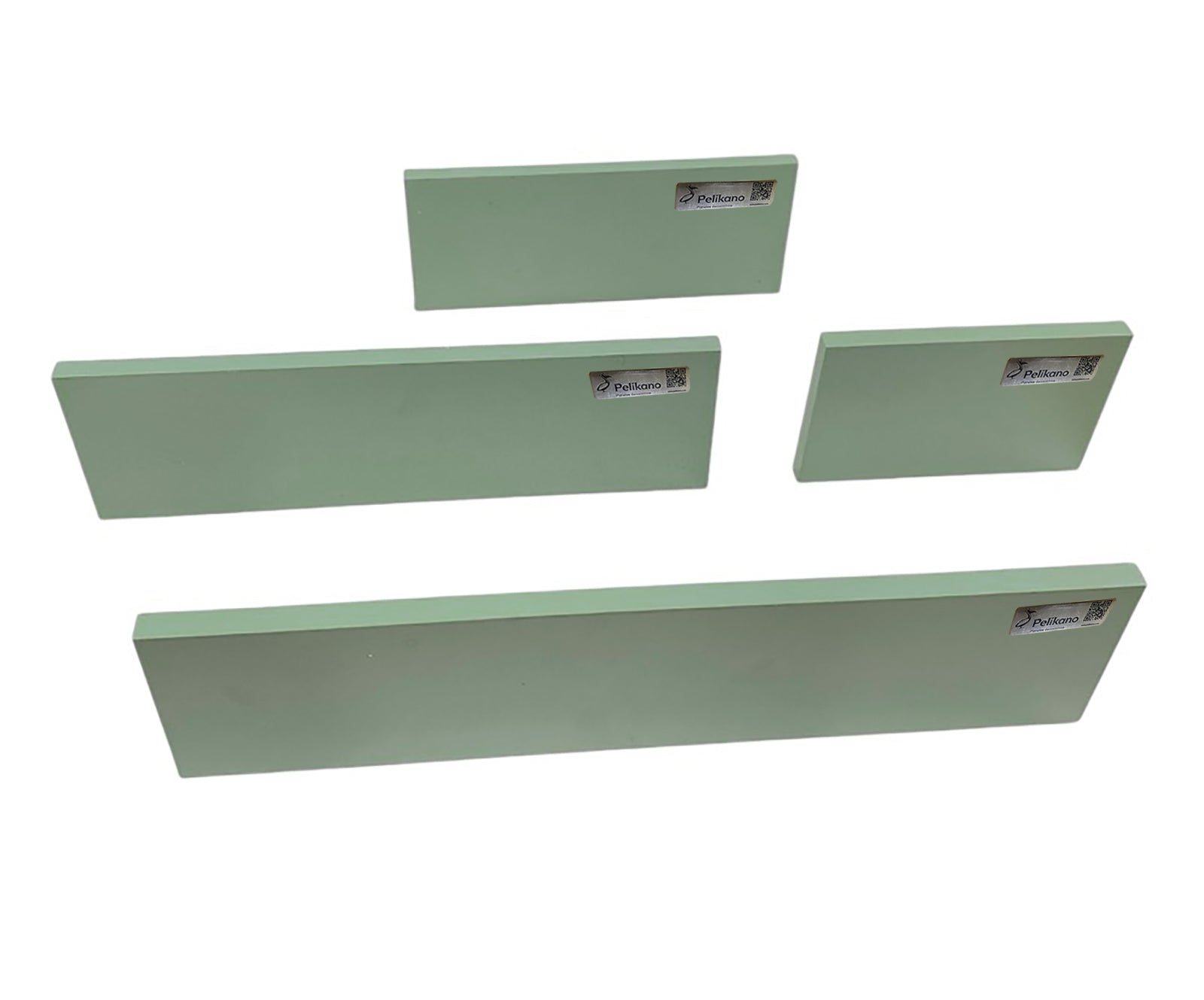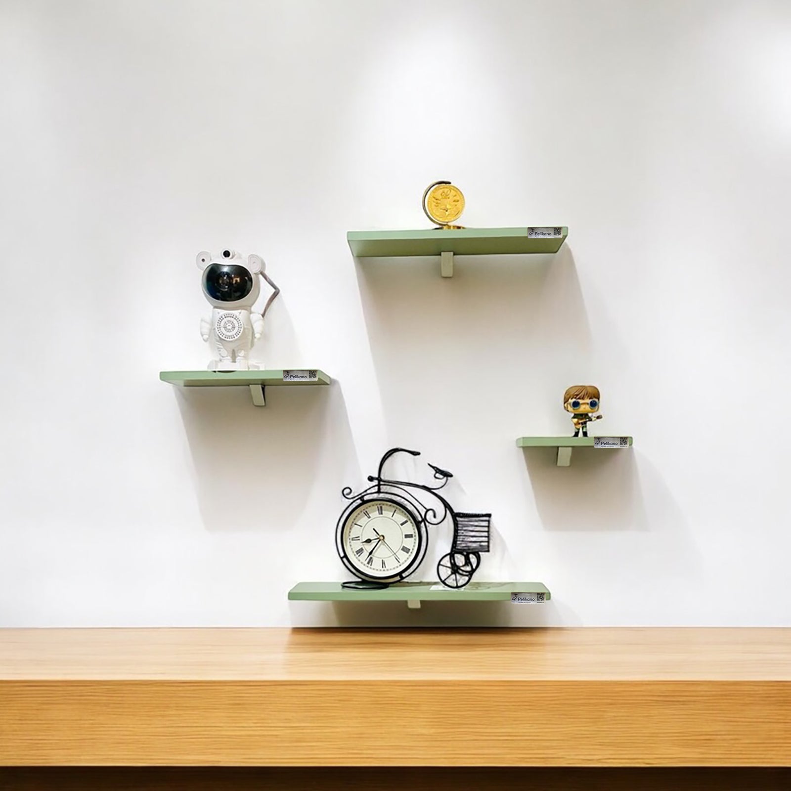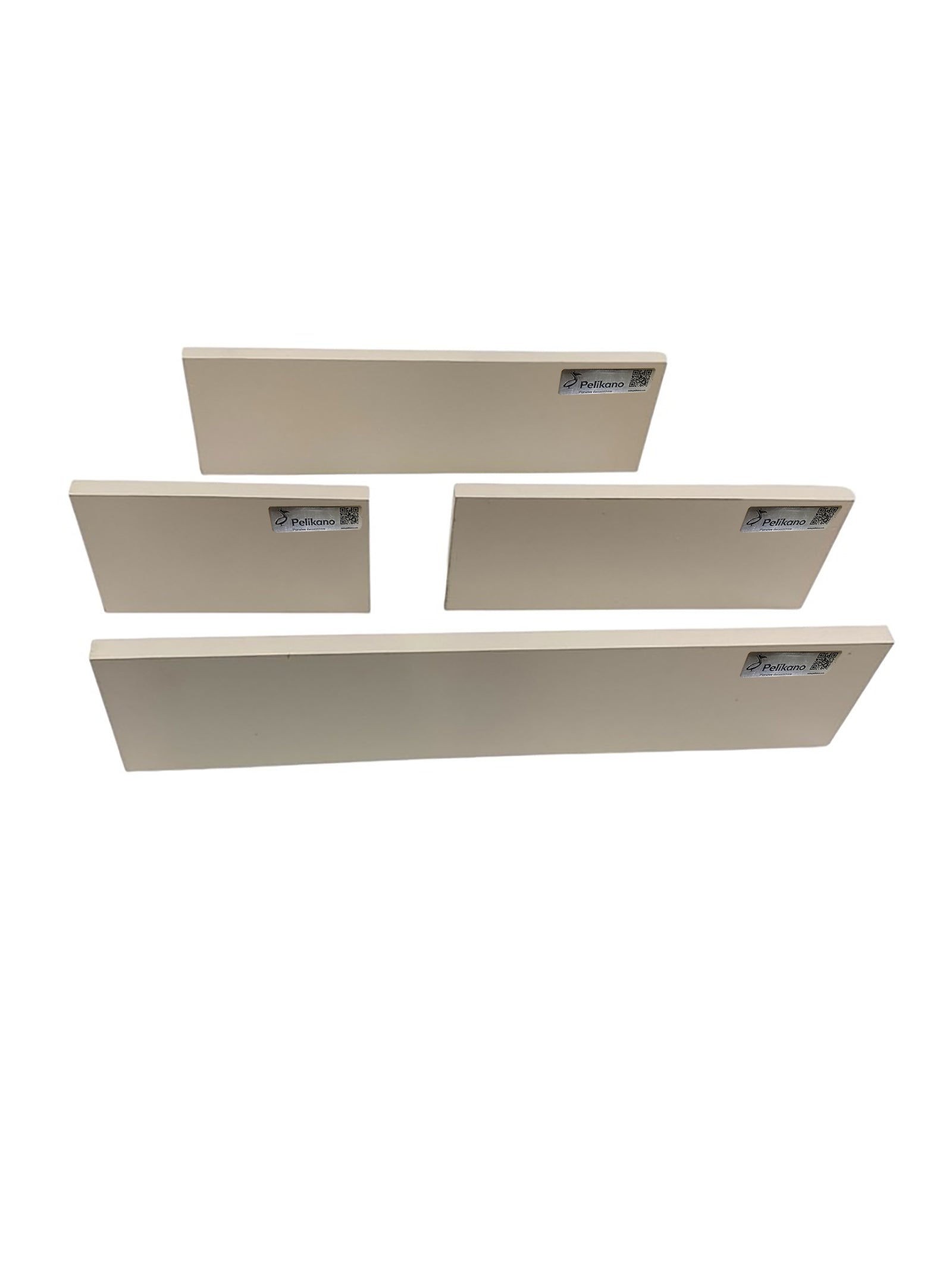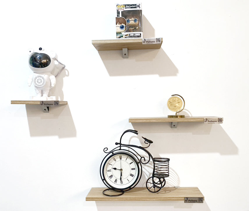 Largo 50, 40, 30 y 20 cm x 12 de fondo x 15mm espesor , (Para ver las medidas gráficamente puedes ver imagen N° 3). Soporta 3 kilos cada repisa.