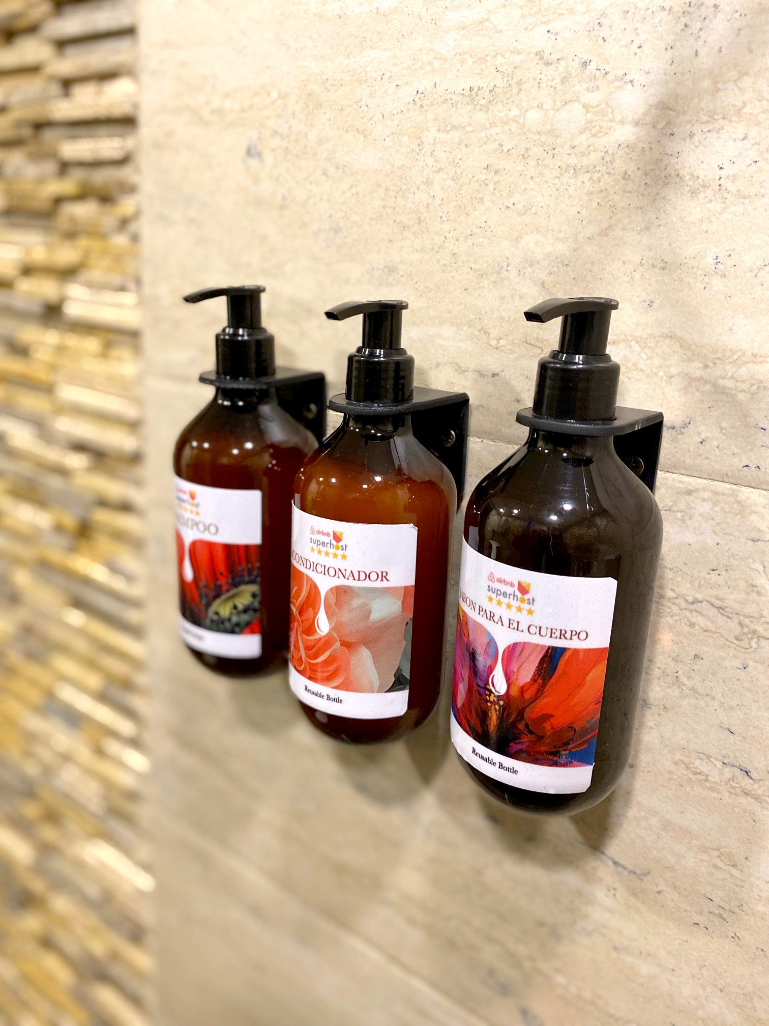 Jabón de cuerpo, Jabón de manos, Shampoo y Acondicionador, para hoteles, airbnb y el hogar.