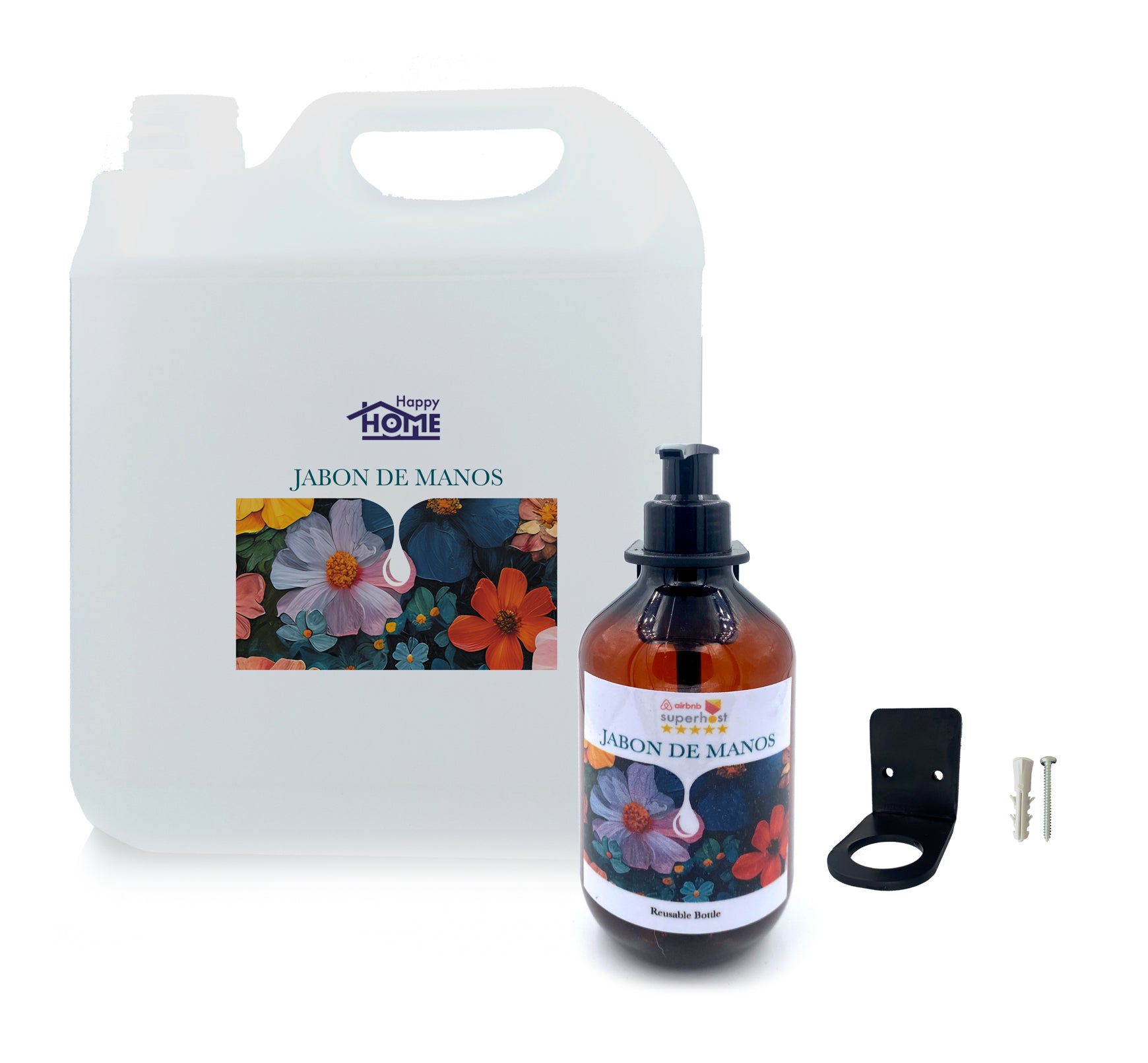 Kit galón jabón de cuerpo o jabón de manos con dispensador para hoteles y airbnb